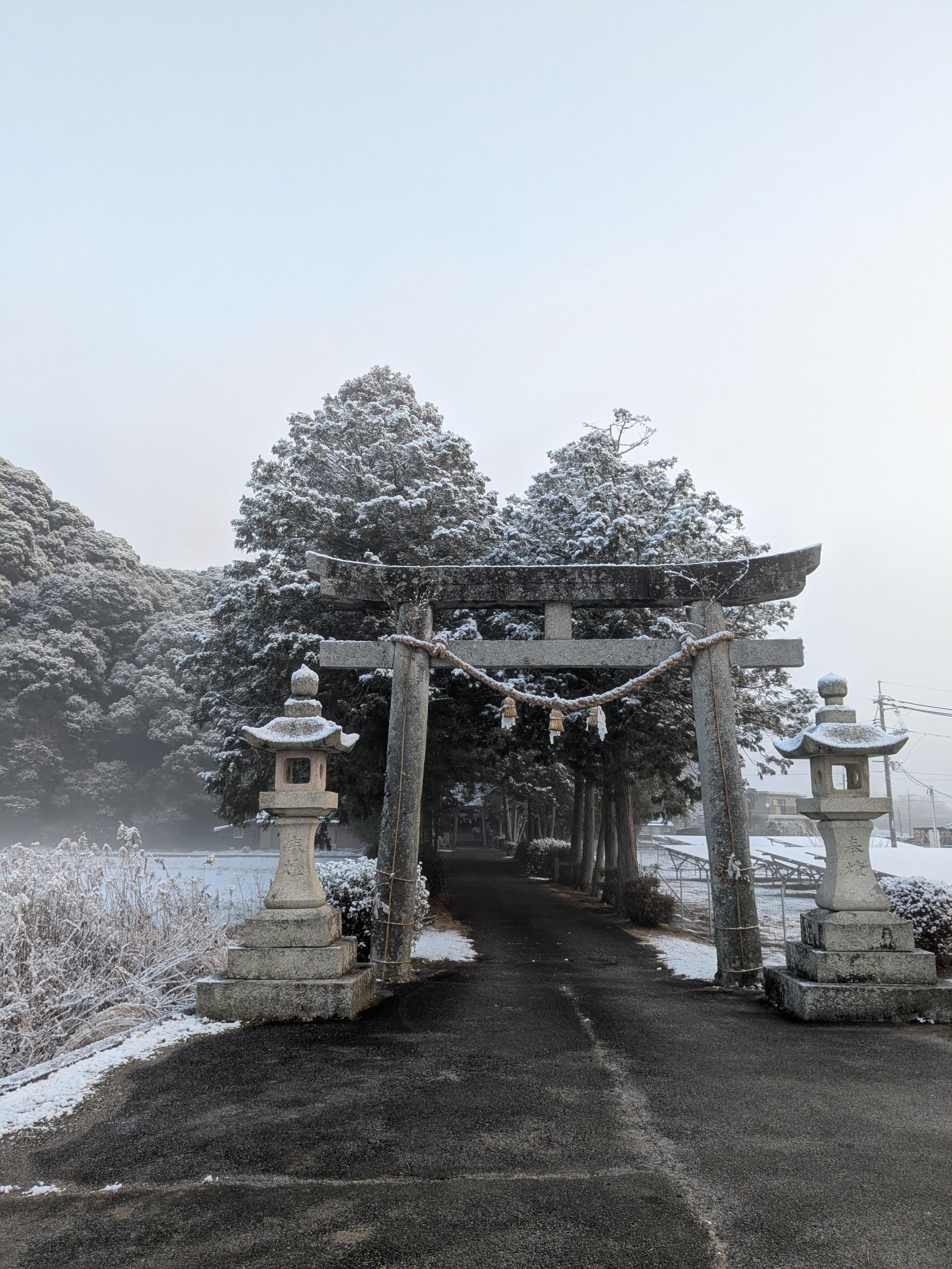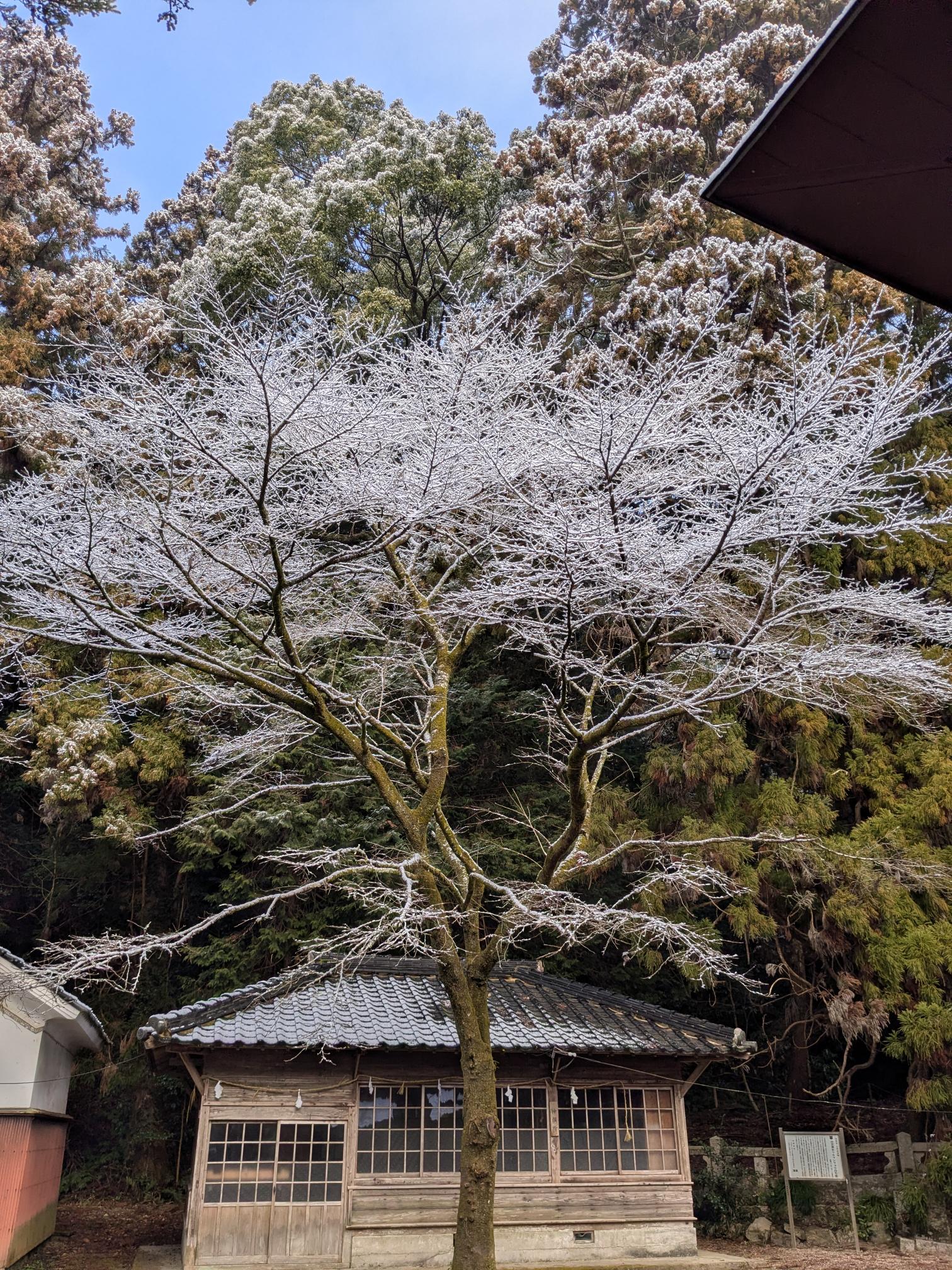 「NEWS おしらせ」にもあるように、2月3日にお焚き上げ、献灯行事、開運星祭を行いました。当日の朝8時はまだ寒く、前日から未明までの雪が雪景色を作っていました(写真1)。 (写真2)は、桜の木ですが、花が咲いたように雪が残っていました。これほど寒くなければ花見酒もいいかもしれません。 ところで、今年に入ってからは徳地地方も乾燥しており、林野火災注意報が連日出されている状況でしたが、2月2日には林野火災警報に変わり、3日のお焚き上げの実施が危ぶまれました。 しかし、2日の午後から雨が降り出し、本降りとなりました。その後徳地では雪に変わり、写真のような景色となり、警報も解除となりました。徳地に雨雪を降らせたのは出雲神社の神様か、私についている雨男の神様か。 もちろん大焚火・お焚き上げを行うに当たっては、事前と事後に地区の消防署に連絡し、消火用水、消火器を用意して、終了後には消火をしっかりしています(写真3)。 ちなみに、(写真4…表)、(写真5…裏)は、開運星祭でご祈願をしていただく『開運祈念守護・諸災消除・息災延命』のお札です。神社の関係者が楮(こうぞ…和紙の原料)紙を折り、お申込みいただいた方の氏名年齢を記入しています。 (写真1) ![]() ![]() ![]() (写真4) ![]() ![]() |